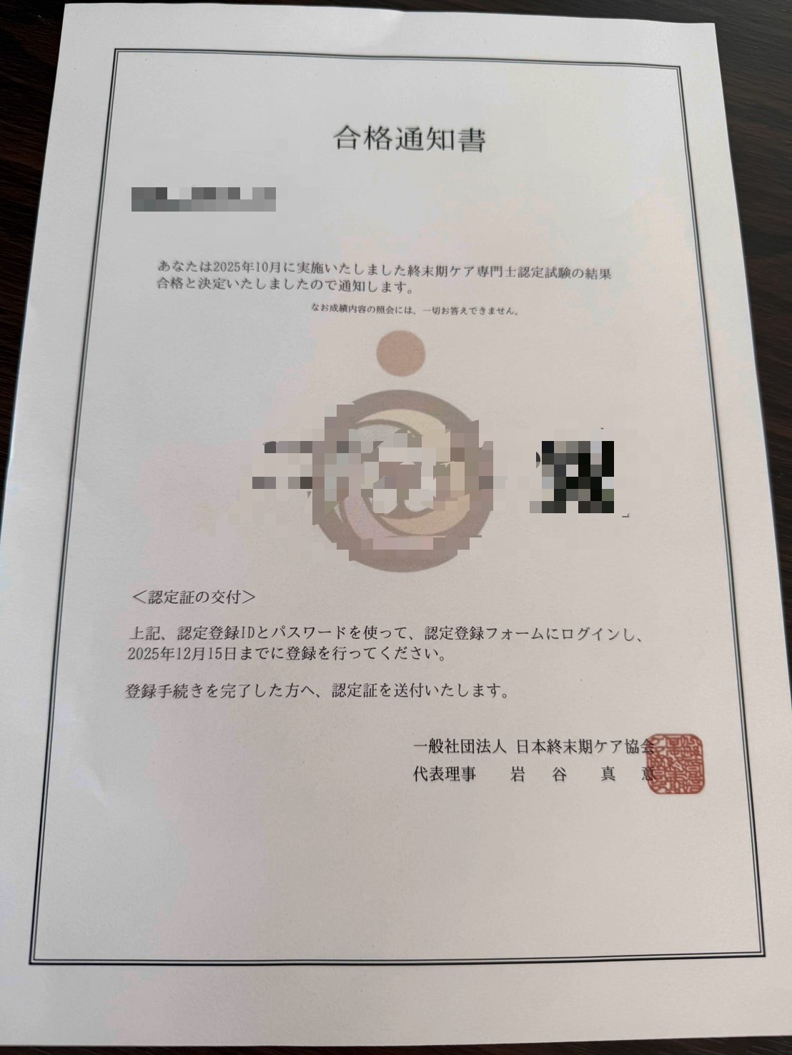 【訪問看護ダイアリー】終末期ケア専門士…合格!